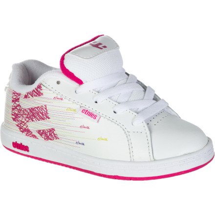 The etnies logo on the side of the Fader Skate Shoe makes kids skate better. It\222s like this magic object that causes these shoes\222 rubber soles grip more strongly and the EVA footbeds to be more cushiony. The padded tongues and collars stabilize your kids\222 feet and add comfort for all those new tricks they\222ll be learning.