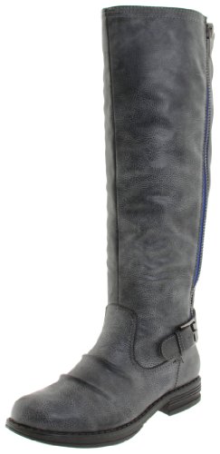 Make your step come out long and strong with the Zandora boots from Madden Girl. These tall boots feature a distressed faux leather upper with a ruched instep, buckle and strap detail at the heel, and a full length contrast colored outside zip for easy on and off entry. The lightly cushioned footbed, traction outsole and stacked heel support your step with durability and sure footing.