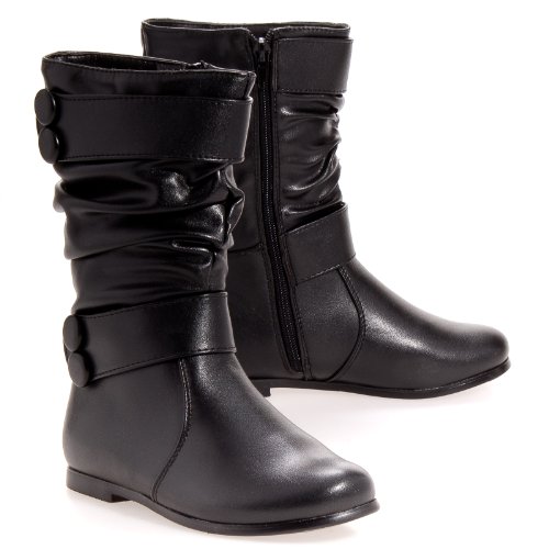 Finding classy dress up boots for a young girl isn't always easy. However, Celia has designed a mid-high, pull-on boot for girls that easily fills the bill. These fashionable boots with the chunky black button accents are the perfect casual boots for young ladies just developing their fashion sense and that want a boot with some style. The sueded finish on these boots looks soft, but it is durable and water resistant...and look, you don't have to zip them.
