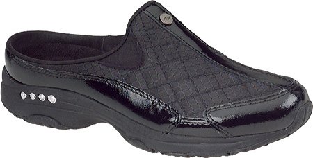 Easy Spirit creates a lighter, more flexible and exceptionally durable sport casual clog that cushions each step. The removable insole is made of compression-molded Elon?, a rubber / EVA combo that's more resilient than a standard EVA insole, which allows air to circulate within the shoe, keeping the foot cool and comfortable. Thanks to the durable rubber outsole, you can always count on excellent traction. Traveltime 12 features the same sneaker / clog comfort as the original but with a quilted fabric and patent upper.
