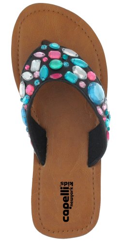 The Detailed Description of Capelli New York Leather Hooded Upper With Multi Gem Trim Girls Flip Flop Black Combo 1/2Features